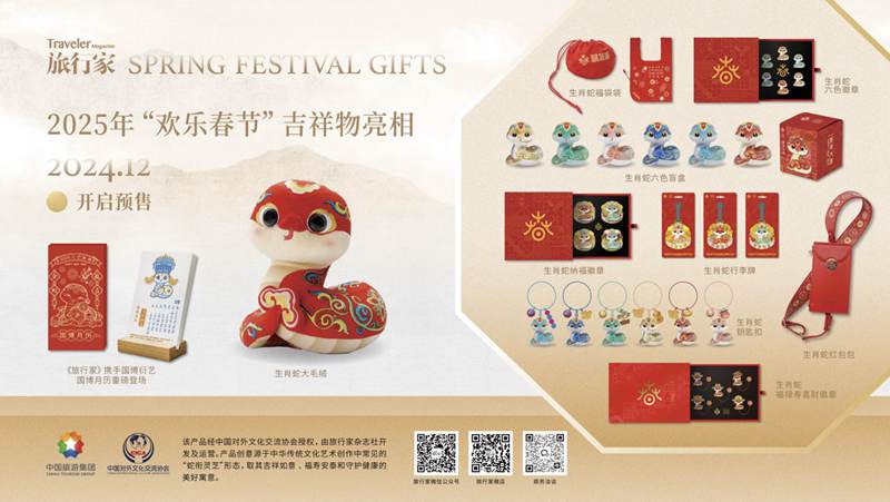 此次發(fā)布的2025“歡樂春節(jié)”系列產(chǎn)品創(chuàng)意源于中華傳統(tǒng)文化藝術創(chuàng)作中常見的“蛇銜靈芝”形態(tài),取其吉祥如意、福壽安泰和守護健康的美好寓意。經(jīng)文旅部國際局同意,《旅行家》雜志獲得2025至2027年“歡樂春節(jié)”生肖吉祥物形象市場化開發(fā)、產(chǎn)品銷售等授權。目前雜志已完成第一批次14品類、47個SKU的產(chǎn)品設計和生產(chǎn)工作,涉及毛絨玩具、陶瓷盲盒、精致手辦、蛇年新春對聯(lián)等多類產(chǎn)品。下一步,《旅行家》雜志將根據(jù)文旅部海外慶祝活動需求,拓寬海外銷售渠道,為春節(jié)文化的海外推廣貢獻力量。