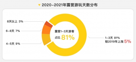 放松休閑的屬性決定了以周末出行為主的“微度假”是露營最主要的場景。數(shù)據(jù)顯示,81%的游客選擇用1-3天來體驗(yàn)露營,親近自然、恢復(fù)元?dú)?。露營地的選擇也不僅局限于所在城市,很多消費(fèi)者喜歡到周邊城市體驗(yàn)更新鮮的環(huán)境。比如,廣州和深圳的消費(fèi)者,會(huì)選擇自駕1-2小時(shí)即達(dá)的惠州、佛山、中山露營。